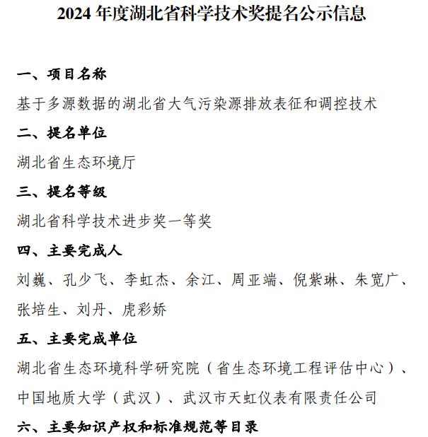 2024年度湖北省科學(xué)技術(shù)獎(jiǎng)提名公示信息