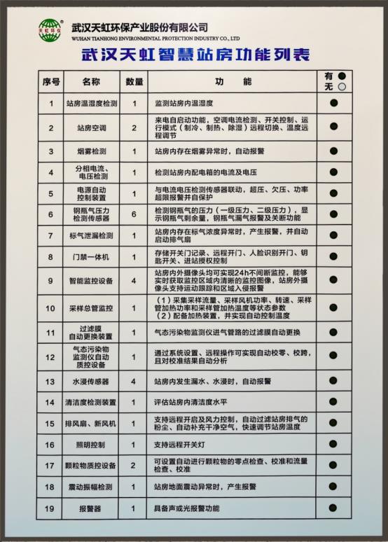 自6月份開始,便時(shí)??梢钥吹剿麄冇懻摲桨浮⒀芯考?xì)節(jié)、復(fù)看總站要求、實(shí)戰(zhàn)安裝測(cè)試,同時(shí)不忘實(shí)地考察研究其他單位的建設(shè)情況。無(wú)論下班后,還是星期天,總能在站房?jī)?nèi)外看到一群忙碌的身影,在如此短時(shí)間、高溫度的客觀條件下,大家齊心協(xié)力最終在7月14日完成了整體站房建設(shè)。智慧站房除常規(guī)功能外,還包含19項(xiàng)自動(dòng)化控制功能,多于總站要求的必配項(xiàng)。可實(shí)現(xiàn)遠(yuǎn)程開門、遠(yuǎn)程開關(guān)燈、站房溫濕度監(jiān)測(cè)、站房空調(diào)自控、站房清潔度及震動(dòng)監(jiān)測(cè)、站房煙霧及水浸監(jiān)測(cè)、電源檢測(cè)及自控、氣瓶壓力及泄漏監(jiān)測(cè)、站房?jī)?nèi)外環(huán)境實(shí)時(shí)監(jiān)控及報(bào)警、采樣總管參數(shù)監(jiān)控、氣態(tài)監(jiān)測(cè)儀過(guò)濾膜自動(dòng)更換、氣態(tài)監(jiān)測(cè)儀自動(dòng)質(zhì)控、顆粒物質(zhì)控等。