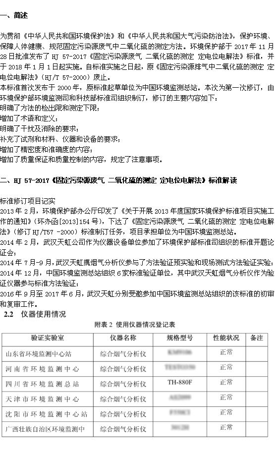 解讀 HJ 57-2017 《固定污染源廢氣 二氧化硫的測定 定電位電解法》新標準